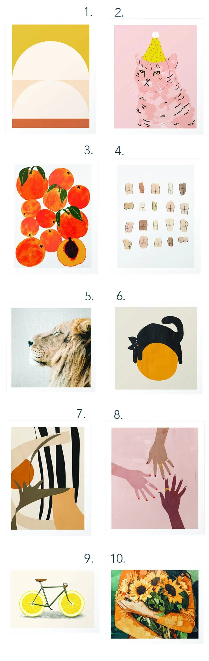 Although I love creating when I can, I want to support other artists and curate a collection of art that celebrates many different styles from my own. For this reason, I love browsing Society6 for art prints that can contribute to a unique collection without breaking the bank. From a large-scale print for a focal wall to a collection of small-sized prints for a gallery wall, they have so much variety and option from a wide selection of artists. Humorous, serious, thought-provoking, just plain fun – they literally have it all.