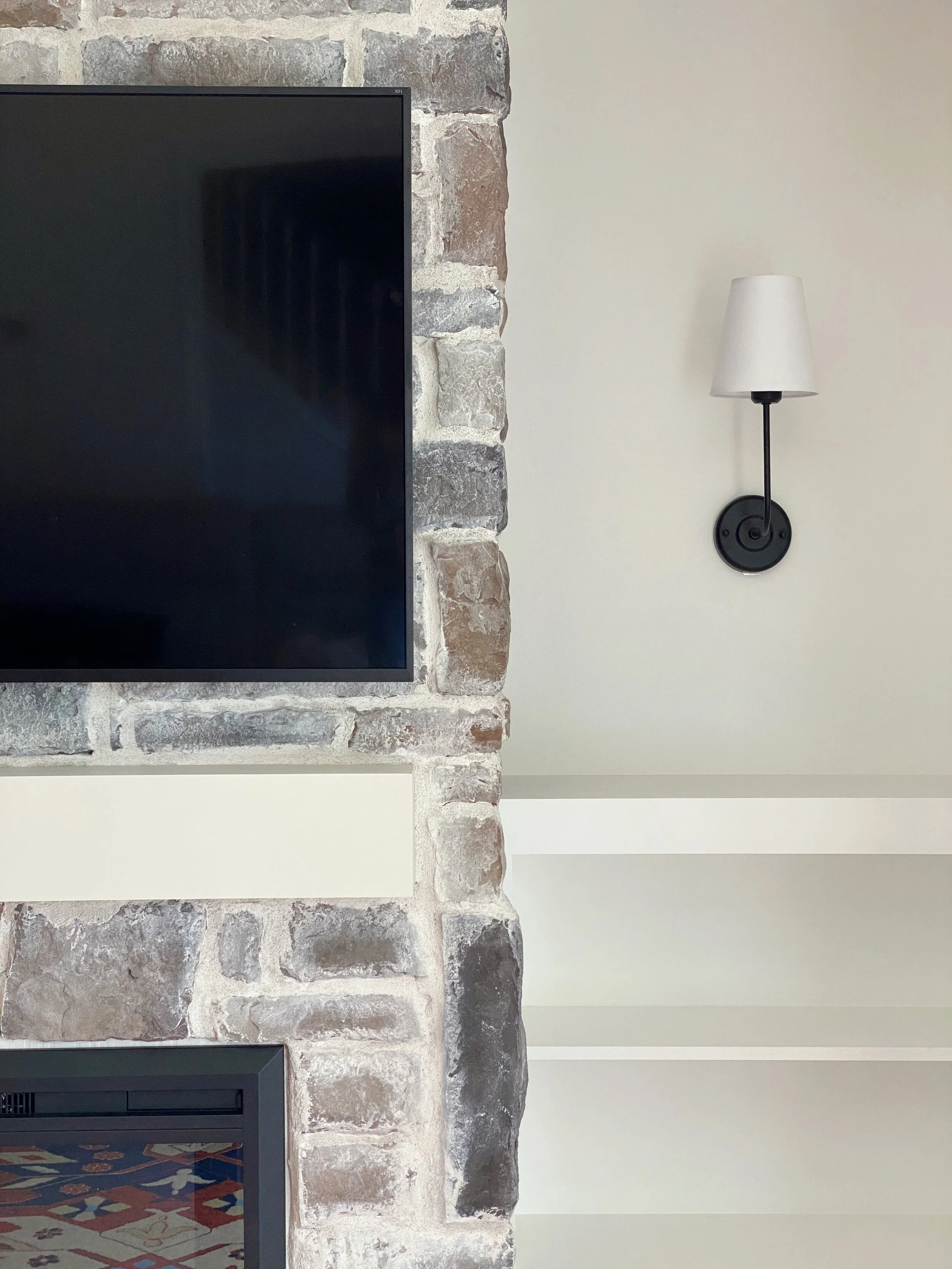 And so, it’s finished. It took me three months, many new power tools, a handful of confidence and self-doubt swirled together, extra hands to watch Mabel on weekend mornings, and a small dose of ignorance to jump in and make it here. This was by far the hardest challenge I have ever taken on. From learning how to use new tools or how to try new products to physically and emotionally pushing myself, I can’t even put into words how satisfying it is to see what this has brought to our space. I started this project because I felt our living room - the heart of our home where we spend so much time - lacked any character and focus. Now, this fireplace brings the texture, charm, and coziness that I always envisioned for here.