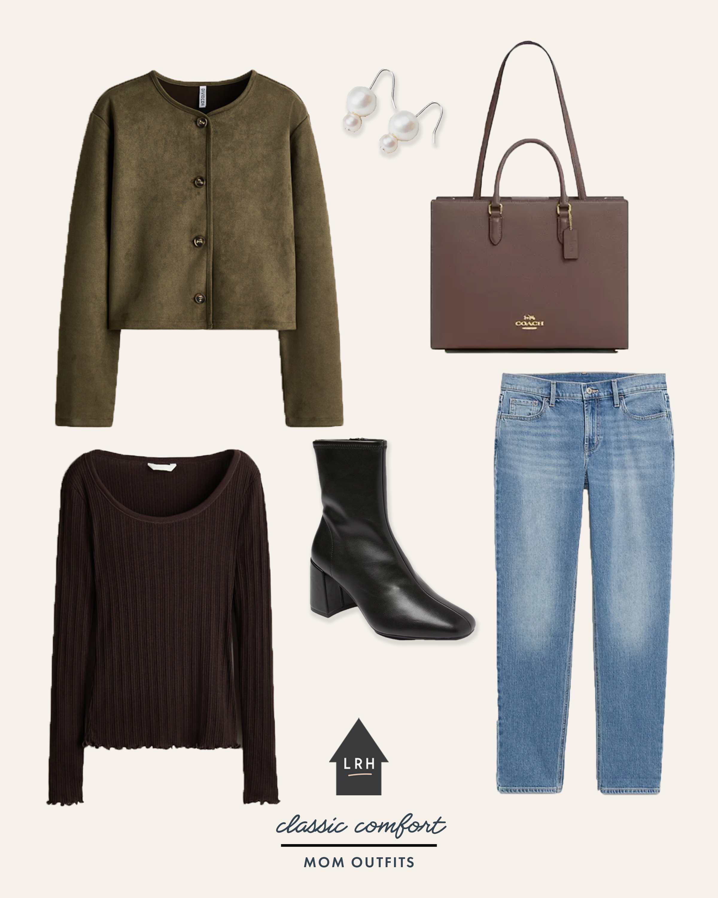 I recently added a few new pieces to my wardrobe that are great for that transition from late winter into early spring and felt inspired to put together a few outfit ideas that use only a handful of items from my closet. These pieces have proven to be so versatile and make living that mom life pretty comfortable and easy. I thought I’d share a few things I’ve learned here in case you’re looking for some classic comfort mom style inspiration these days too.