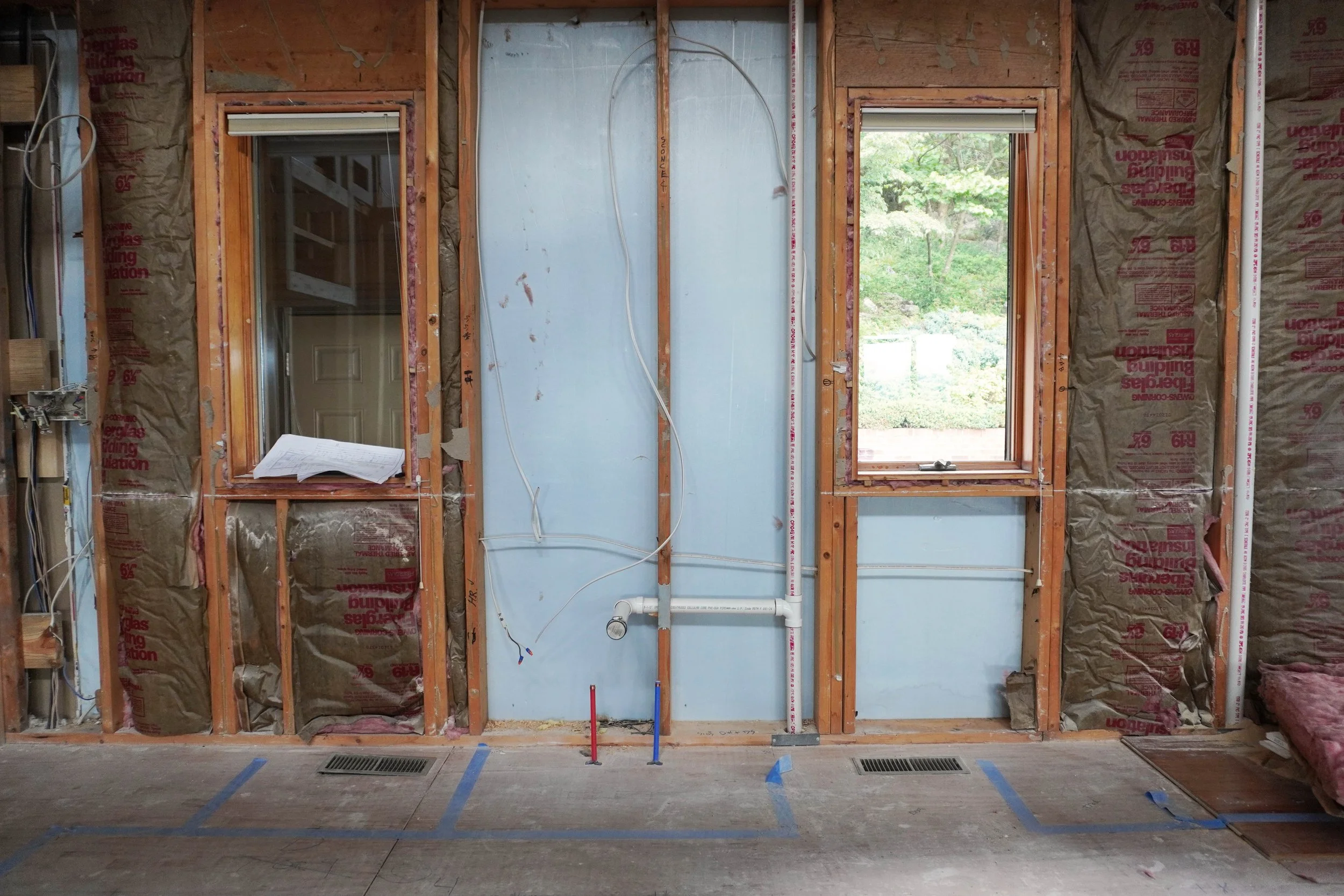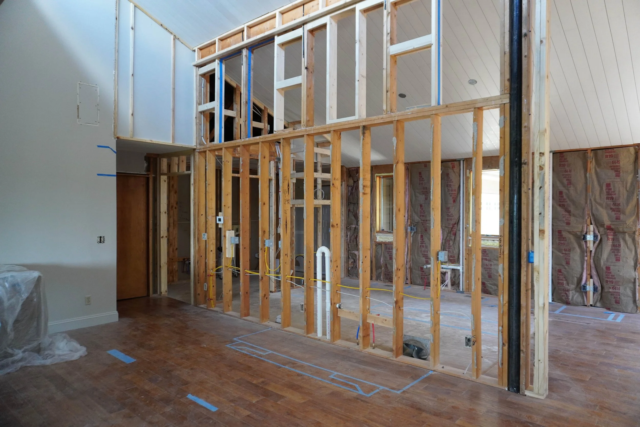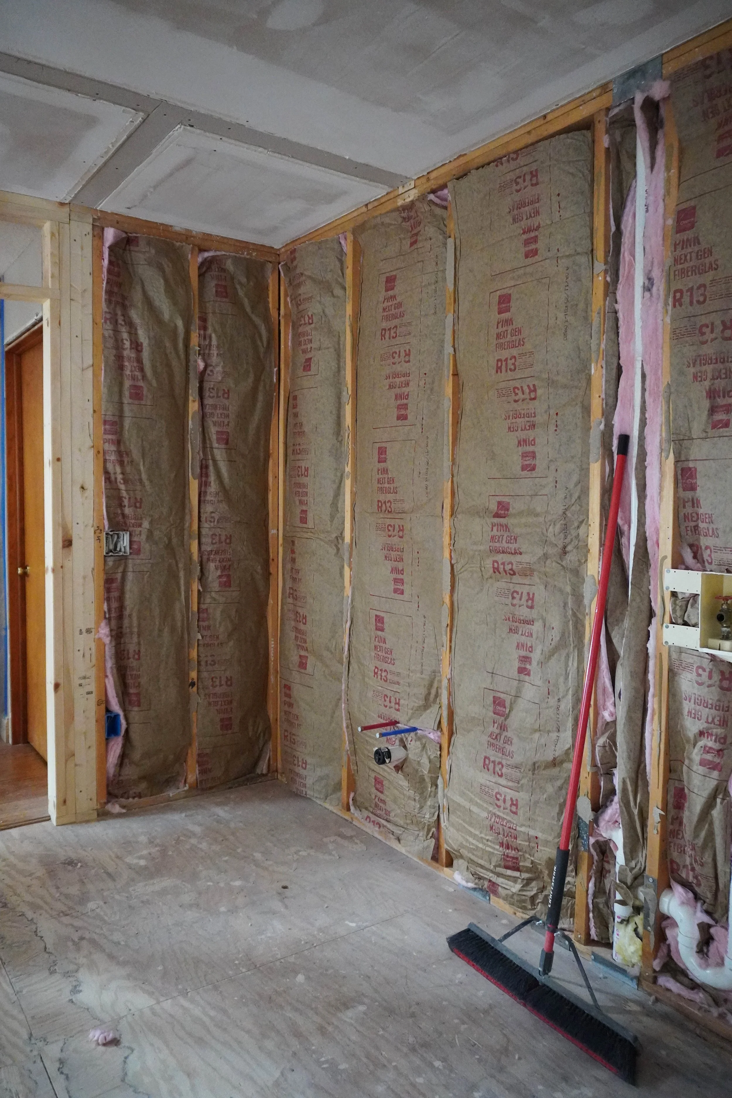 In addition to the windows being moved up, the contractor team also added some additional framing and insulation before drywall was set to go up. There are a few quirky details in this house that required some attention, including framing out a strange little dip in the wall plane to make it flush with the existing wall and restructuring some of the openings at the top of the tall central wall between the kitchen and living room. While these openings seem odd right now, they have been adjusted and reframed to work with a future project we have in mind for this space - a fireplace. We ended up cutting the fireplace install out of the project this time around, but eventually we will add it and it made sense to account for that design in the framing and drywalling now.