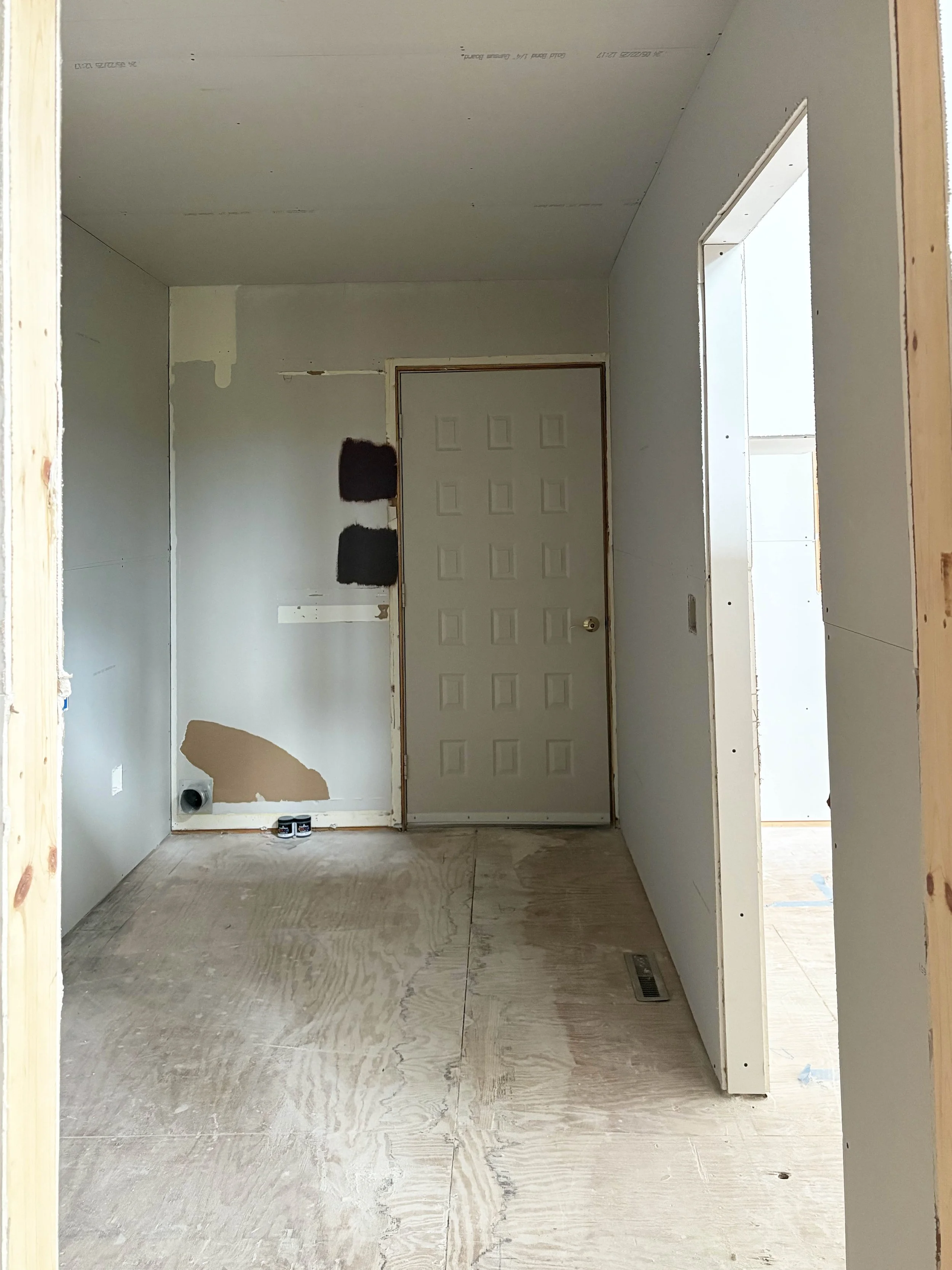 As I mentioned, we had our contractors remove the existing closet outside of the laundry room and reframe the one wall to absorb the additional space into this room. This gave us some additional square footage. They also shifted the doorway between the laundry room and the kitchen down the wall to a new location to accommodate our new kitchen design and eliminate the bottleneck at the door from the garage. This process was part of our greater renovation project, so it was easy enough for them to do that work for us.