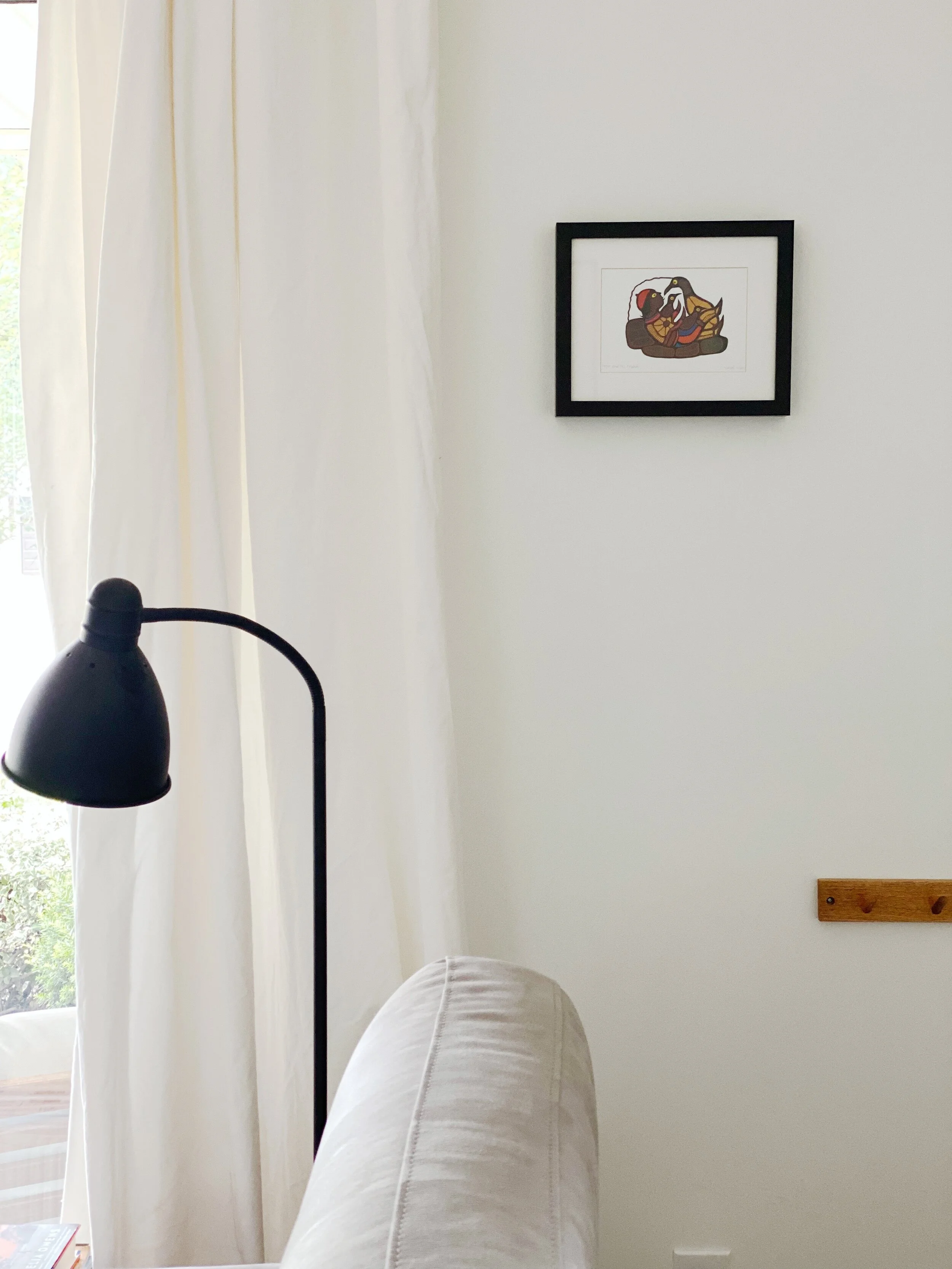 A few years ago, I participated in a day-long Indigenous Learning and Reconciliation trip with a small group of other white individuals. We visited the nearby Woodland Cultural Centre and had the opportunity to listen as a residential school survivor so graciously shared their experience with us. The cultural centre is located next to the Mohawk Institute Indian Residential School, which only closed in 1970. Hearing that first-hand account was incredibly heartbreaking. While on that trip, I purchased a print of a painting by a very well-known Anishinaabe artist, Norval Morrisseau that now hangs in my living room (pictured above). I studied a lot of Native North American Art in the days of my undergrad and always had an appreciation for Norval Morrisseau’s work, but this print also acts as a reminder of my learning trip and the impact it had on me. I know that I still have a lot of learning to do from these beautiful communities and I hope this print always reminds me of that.